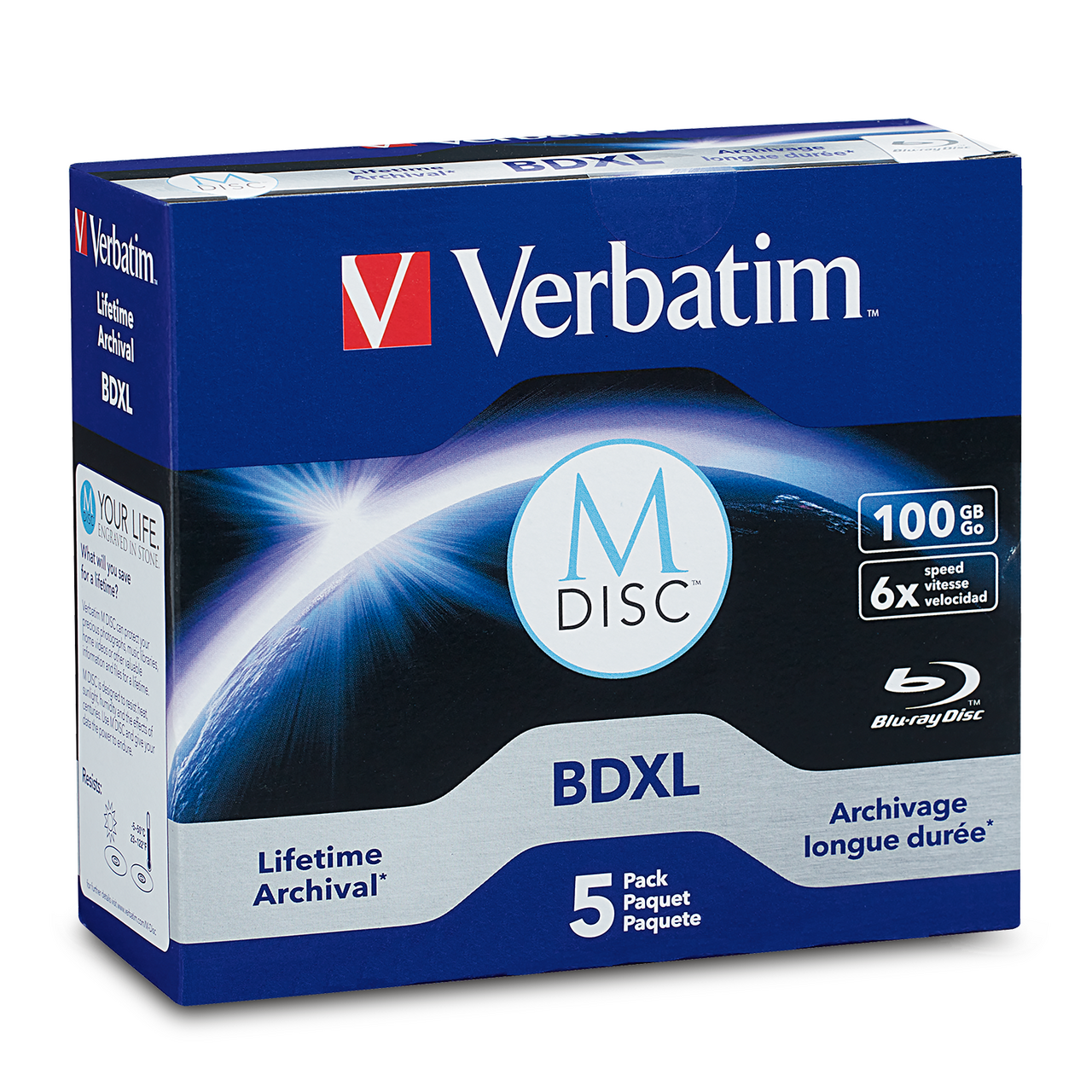 Designed for widely distributed large data such as scientific images, video, and other commercial application object data, Verbatim M DISC BDXL media have a storage capacity of 100GB - allowing you to use fewer discs while archiving your files.