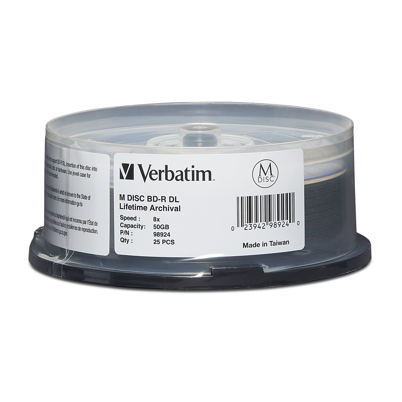 Designed for widely distributed large data such as scientific images, video, and other commercial application object data, Verbatim M DISC BD-R DL media have a storage capacity of 50GB - allowing you to use fewer discs while archiving your files.